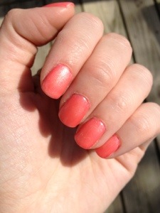 When the weather gets warmer, I’m always ready to brighten up my nailpolish! I’m loving this combination of colors to create a fun, shimmery coral shade! Now, if I can just figure out how to better manage my cuticles!